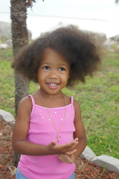 My favorite way to wear her hair is in an afro with all her curls out and about.